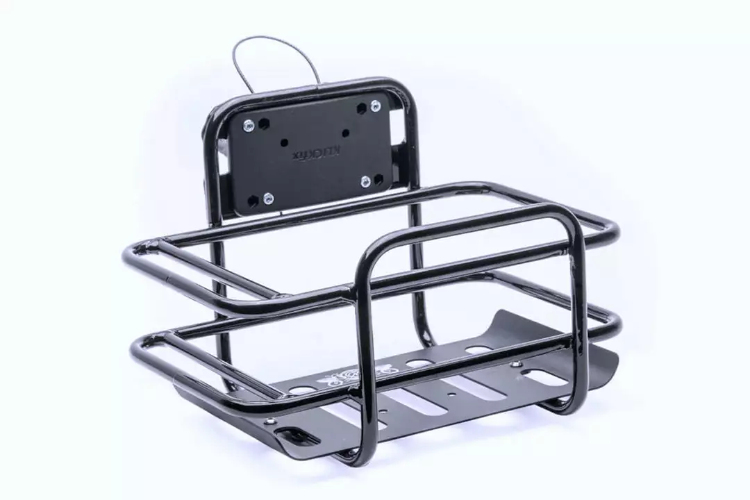 Constructed of sturdy and lightweight aluminum alloy, loaded with a side slot for carrying a u-lock and a light mount below the basket. Mounts to 22.0-31.8mm handlebars with the steadfast German made and engineered mounting bracket from Rixen & Kaul. Load it up with a sixer, some snacks, a pint of ice cream, some gummy candy, cat food, dog treats and be on your way.