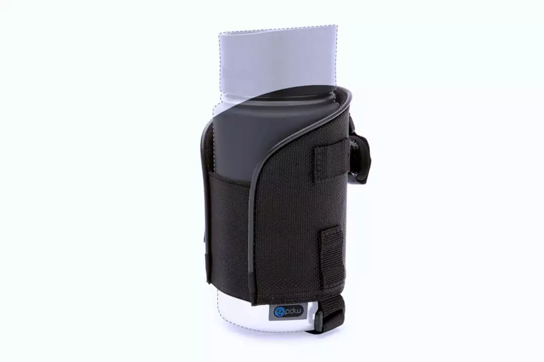 The Hot Take beverage holder is a super hot take on how to carry a beverage by bike. Designed specifically for use with Kleen Kanteen/Miir/Hydroflask containers. The Hot Take is intended for use with cylindrical shaped vessels, so tall boys fit fine! The bottom strap is adjustable, allowing the Hot Take to accommodate 12-24oz containers.