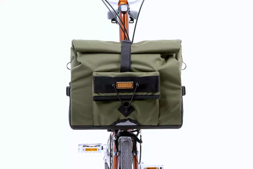 The bag is mounted via a Brompton front carrier block compatible fitting, both external and internal stiffeners enable the bag to hold its shape even when fully loaded. Made of 100% waterproof textured nylon with a tape sealed lining, spare clothes and tech are guaranteed to stay dry on the wettest of rides.