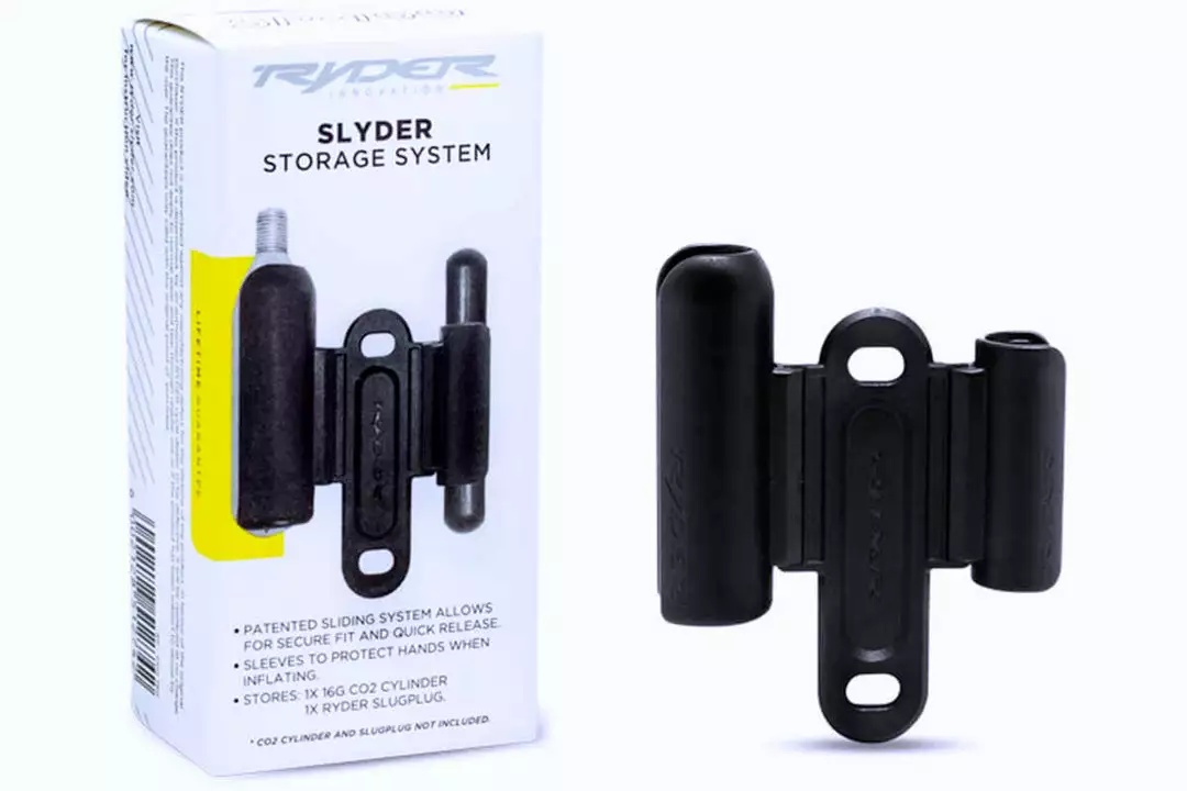 The SLYDER Storage system keeps your CO2 inflation to hand where ever your bike goes, securely and conveniently storing your 16g CO2 cartridges and SLUG PLUG under your bottle cage.