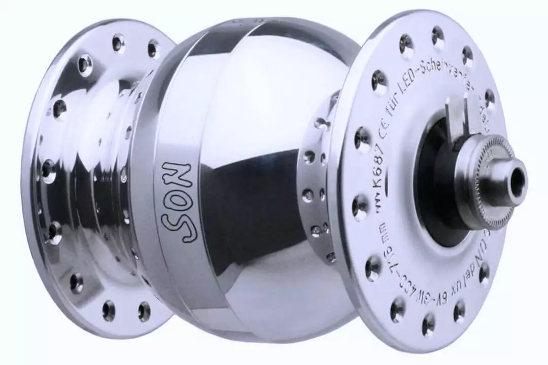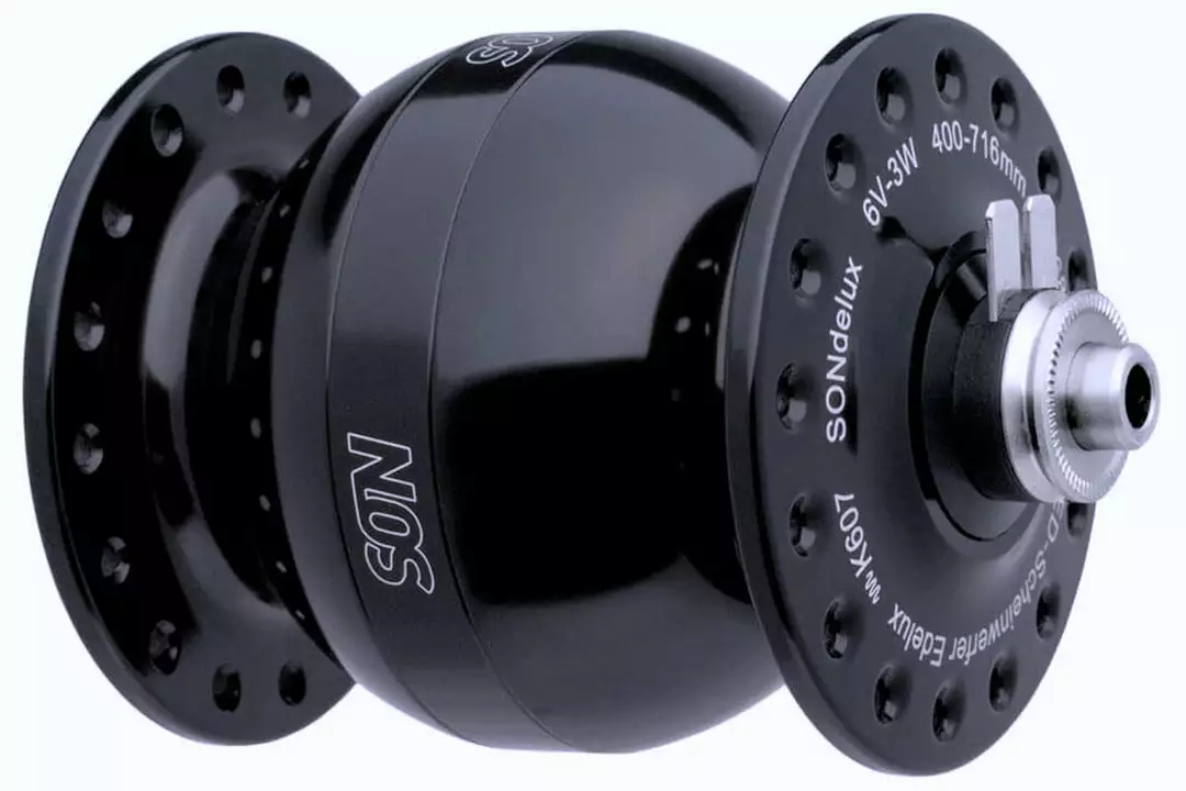 SONdelux hubs provide the lowest possible drag while powering your lights or USB devices as you ride. These lighter, smaller SON dynamos are designed for 16″ and 20″ rims.