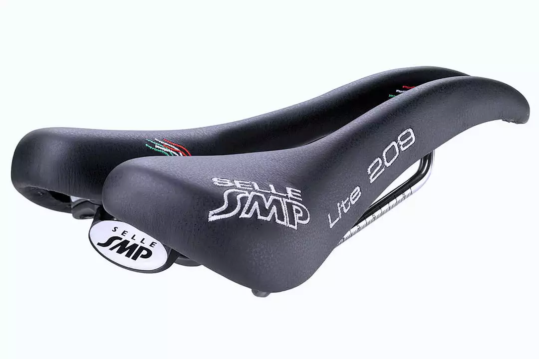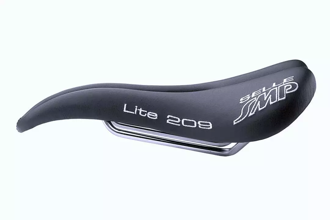 The Selle SMP Lite 209 is covered in real leather and has excellent all-around features such as Selle SMP’s completely free central channel, the original eagle-beak nose and the raised rear giving this model a fascinating aerodynamic style.