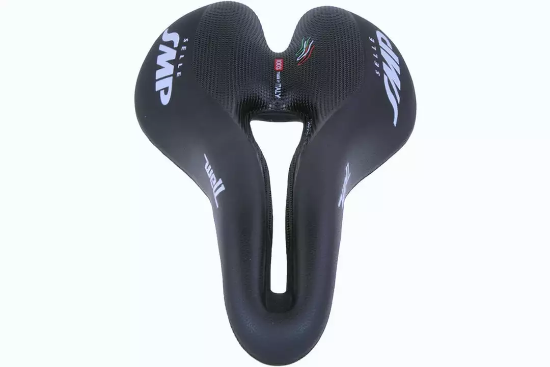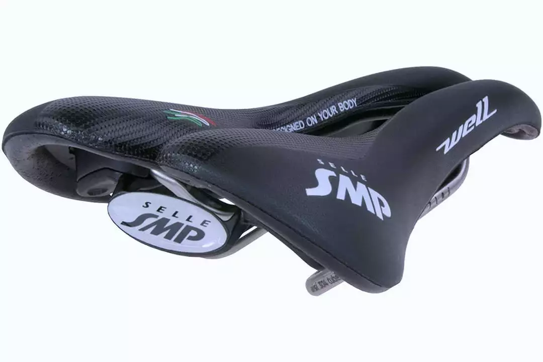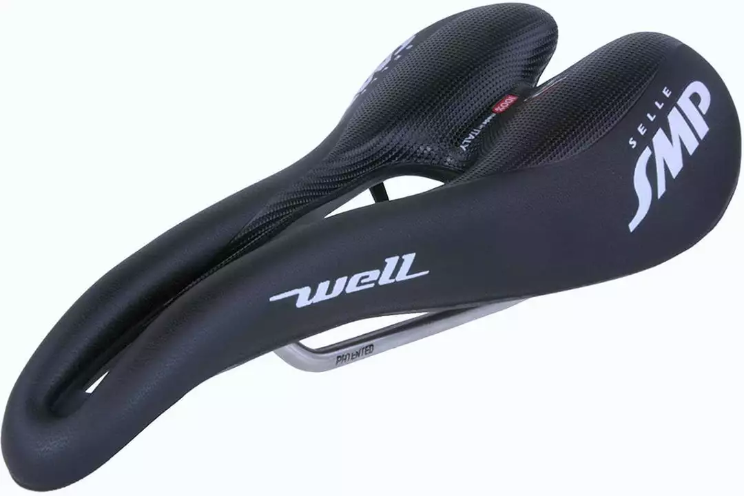 The Well is best suited for cyclists with medium-wide and wide pelvises, as it features a longer and wider body, with more padding, than other models in this range. At the nose, there’s the characteristic “beak” shape designed to provide a flat base while sitting, without excessive pressure on the genital area. SMP’s pronounced central channel was also incorporated, which further reduces pressure on the pudendal nerve and surrounding soft tissue.