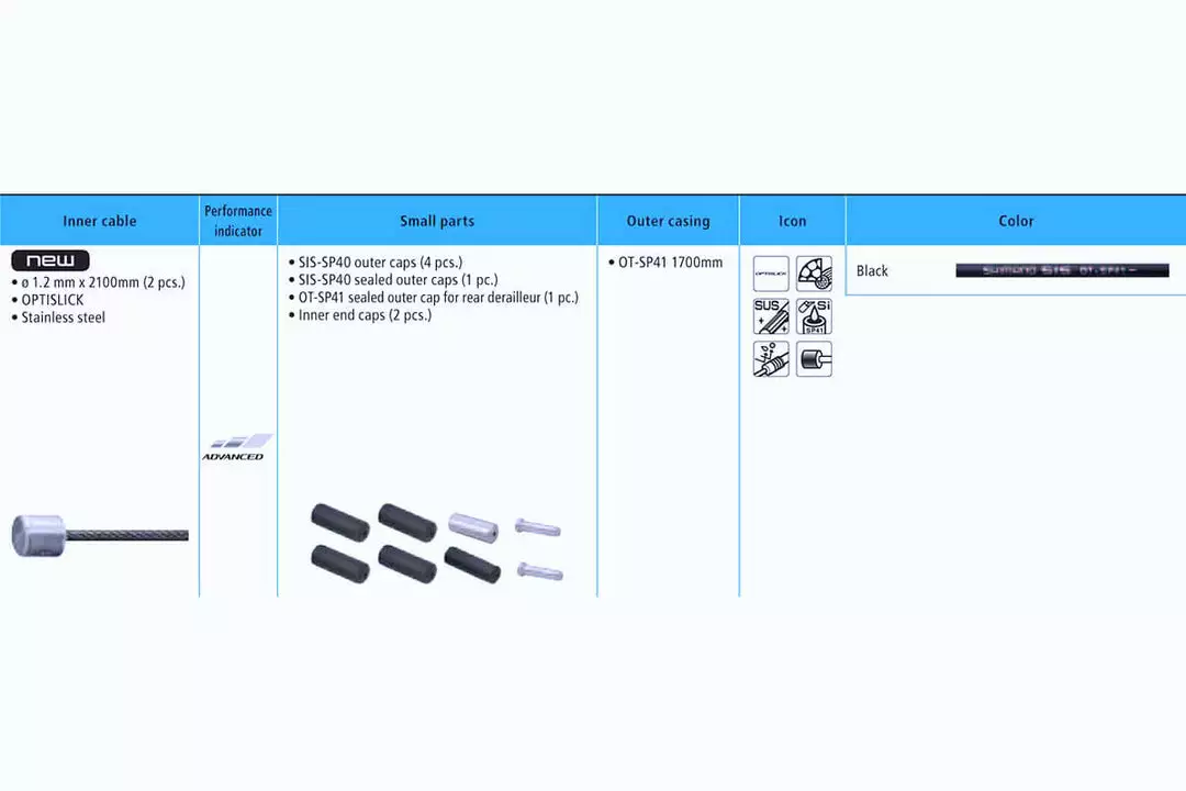 OPTISLICK is electrically coated to the stainless steel inner wire leaves a smooth surface for low friction and reduced sliding resistance. Outer casing is lubricated internally along its length with low-friction silicone grease to reduce cable friction. SP 41 outer casing uses a special directional wound construction process makes for an axially stiff cable that transmits shifting movements accurately and quickly. Outer casing is lined with a polymer sheath to assist with the smooth operation of the inner wire.