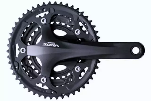 2-piece design double-ring 9-speed chainset from the excellent value Sora range.