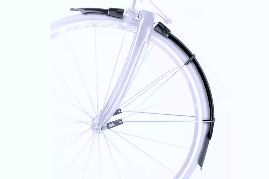 The end of each mudguard extends to below the hub axles. This length ensures a full coverage, meaning you, and also the cyclist behind you, are spared from splashing.