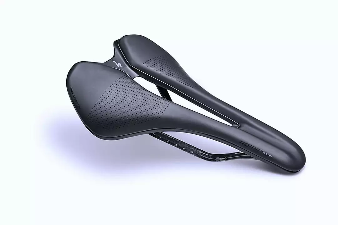Keep it low and aero without sacrificing comfort. The carbon-railed, ultra lightweight Romin EVO Pro is a high-performance road saddle that’s contoured to put you in a position for optimal power transfer and comfort as you put pressure on your competition. The Body Geometry channel is designed to maximize blood flow, while the saddle allows you to maintain comfort easily, even while in a competitive, more aerodynamic position.