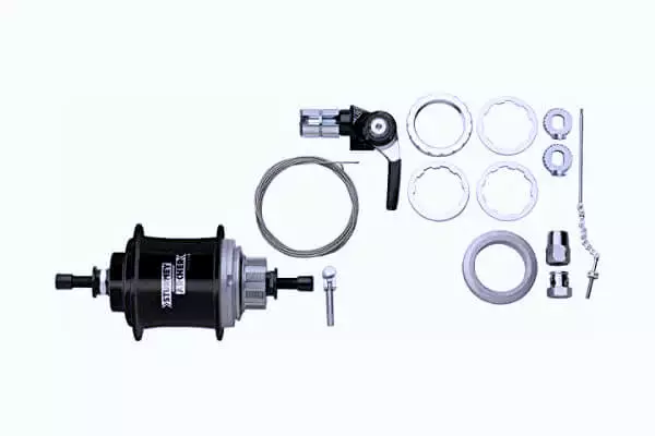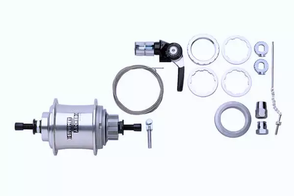 Sturmey-Archer S3X 3-speed fixed gear hub kit includes barend shifter, cable, mounting hardware. Ideal for single speed frames and increasing your range, the hub has a 120mm spacing. Cog sold separately.