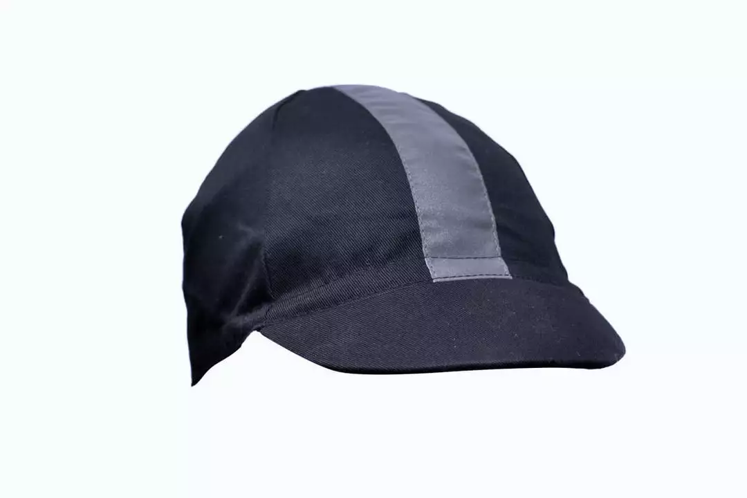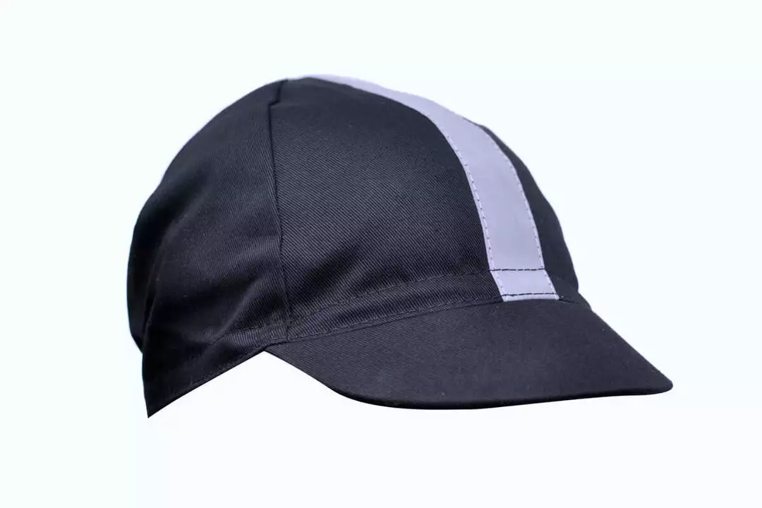 A traditional 4-panel cap made with a organic 7 oz cotton twill with a reflective ribbon.