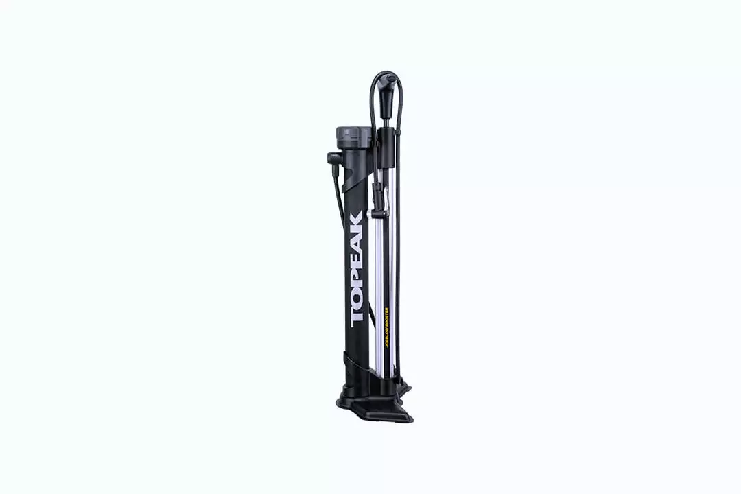 Half air compressor, half pump. The JoeBlow® Booster pump just made it easier to install tubeless tyres. This pump has an integrated aluminum air chamber that stores an air charge of one liter, up to 160psi / 11 bar, to quickly fill your tyre and ensure the proper installation on a tubeless rim, just like a shop compressor.