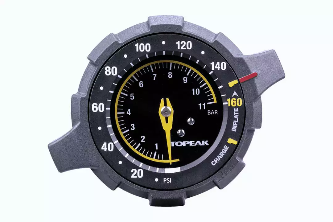 Once you flip the selector from “CHARGE” to “INFLATE” mode, air bypasses the chamber and flows directly into your tyre like a standard pump. The top-mounted easy to read gauge, air release button and comfortable dual density polymer grip, combined with its extra-long hose and stable base makes mounting tubeless and standard tyres a breeze!