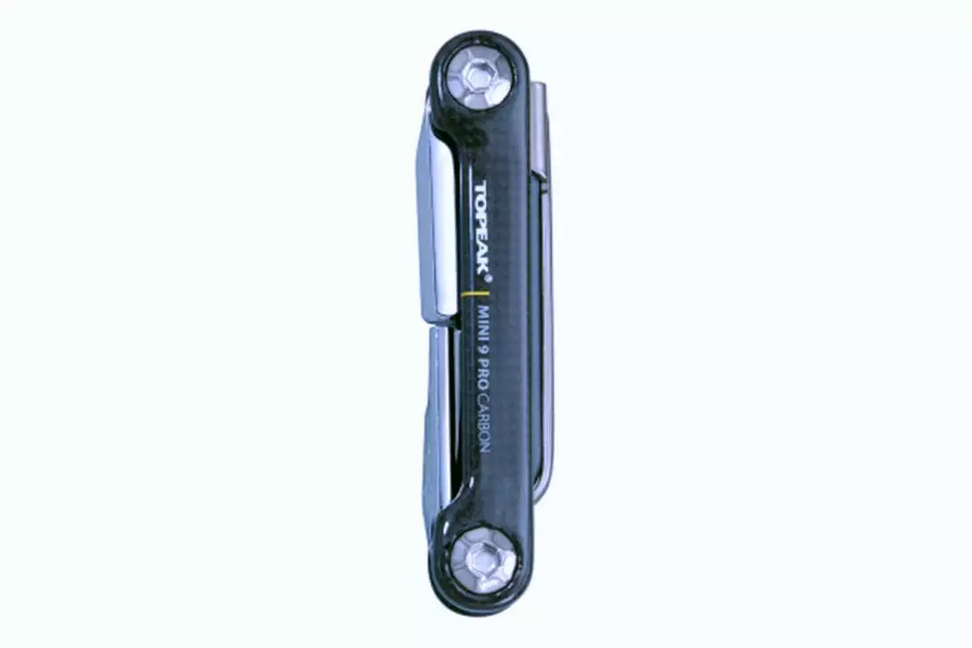 Ultra-light sleek carbon fibre version of the Mini 9 Pro. Professional quality folding tool offering hardened steel tools with 9 functions. Integrated and removable folding tyre lever stores inside tool body for a streamlined profile.