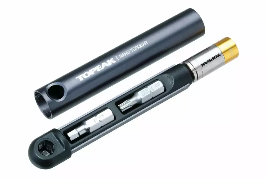 The slimmest and most compact preset torque wrench available. It is a precision-crafted, high quality tool for either the home mechanic, professional bike shop, or your own jersey pocket. Today’s high-tech carbon fiber frames, components and electronic shifting requires exact torque specifications for operational safety and performance and the Nano TorqBar delivers what you need. Available in three preset values, 4Nm, 5Nm and 6Nm and includes the 5 most popular tool bits. Two of your favorite bits can be carried in the handle of the Nano TorqBar for immediate use and even greater portability during rides.