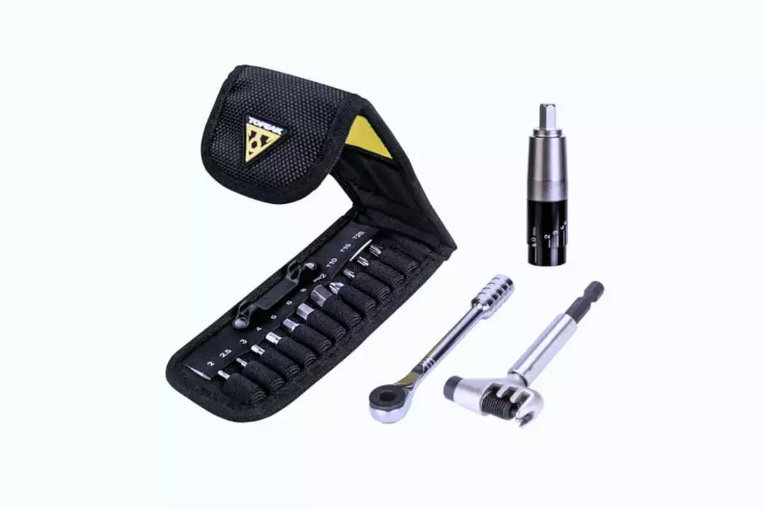 Everything you need to fix and make precise adjustments to your bike while on the road. Featuring a fine tooth ratchet mechanism with adjustable torque TorqBit for accuratly setting component torque values.