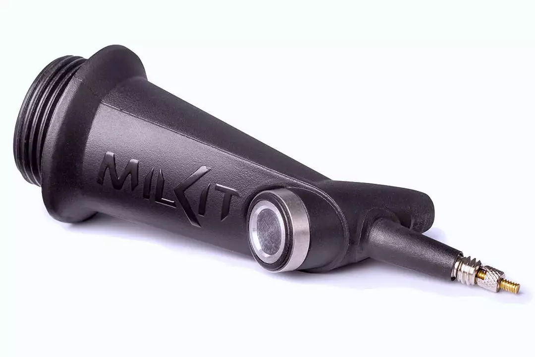 By interfacing with aluminium drinking bottles, the milKit Booster removes the need for a dedicated pressure reservoir, finally making back country tubeless inflation a practical option. Just screw the head onto the bottle, use your hand pump to pressurise it to up to 160 PSI and then just press the head onto any Presta valve to mount the tyre.
