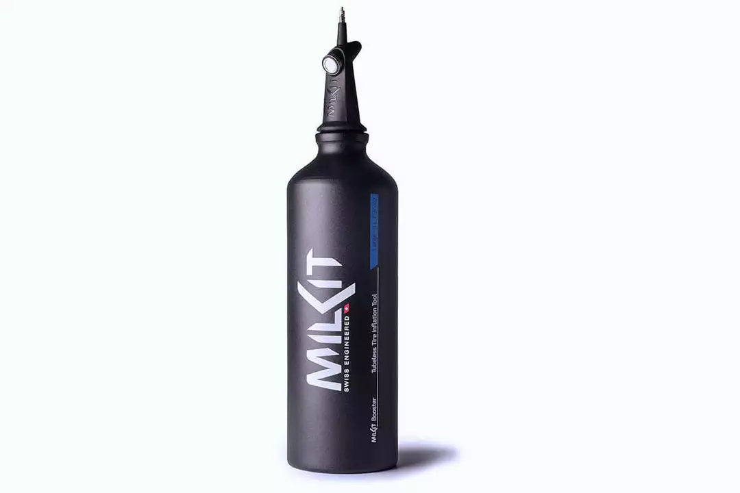 By interfacing with aluminium drinking bottles, the milKit Booster removes the need for a dedicated pressure reservoir, finally making back country tubeless inflation a practical option. Just screw the head onto the bottle, use your hand pump to pressurise it to up to a maximum of 160 PSI and then press the head onto any Presta valve to mount the tyre. Direct connection with no hose between the pressure chamber and valve means the initial rush is delivered instantly, increasing the chances of getting a seal first time.