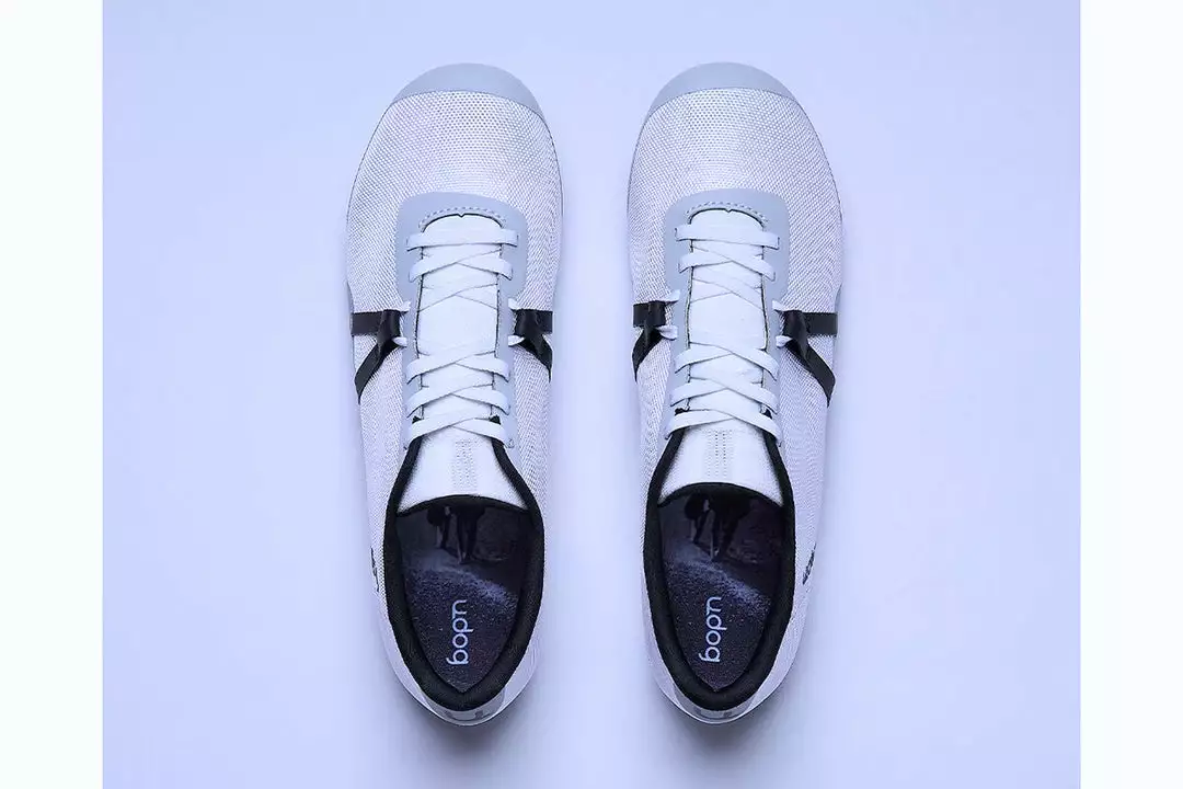 The shoe has been developed with comfort in mind. The design is consciously minimal, eliminating all hardware, plastic and metal parts, that create pressure points. The complex lace-up closure system allows UDOG to use upper materials that are softer and more comfortable when compared to standard cycling shoes minimizing stitching. The upper is made of innovative 3D technical mesh, the material is light, soft and breathable.