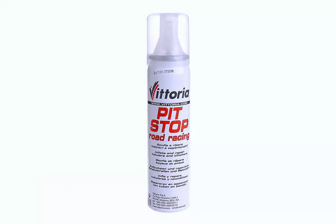 Vittoria’s Pit-Stop is a pressurised latex sealant solution in a can that simultaneously inflates a standard road tyre up to 6 bar (enough to get you home) whilst sealing most small ‘penetration punctures.’ The repair, if successful can last up to 3 months before the latex starts to break down which makes this a great safety net when out training. Larger cuts, unfortunately, are beyond the capabilities of this product but in the majority of cases, Pit-Stop will avoid that annoying phone call or taxi ride home…