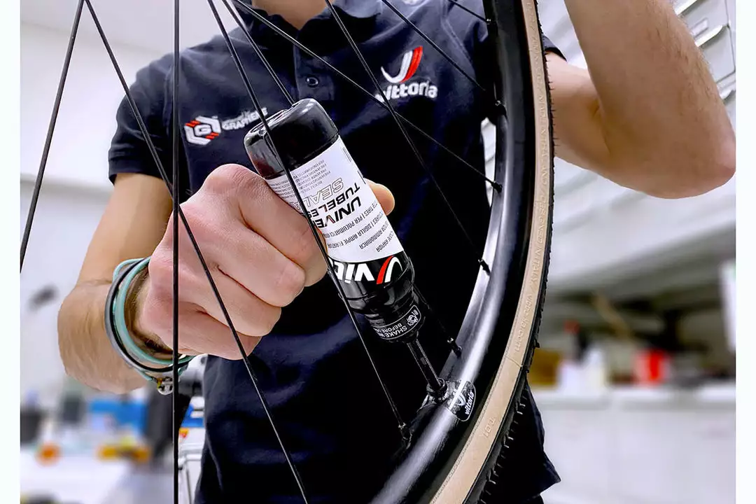 New solvent free tyre sealant formula by Vittoria. It has been specifically developed for TNT tyres and it can be used with standard UST as a means of flat prevention without any problem. The secret to Vittorias Universal Tubeless Tyre Sealant is in the liquid base, which is thin enough to find and seal even the smallest punctures quickly and effectively.