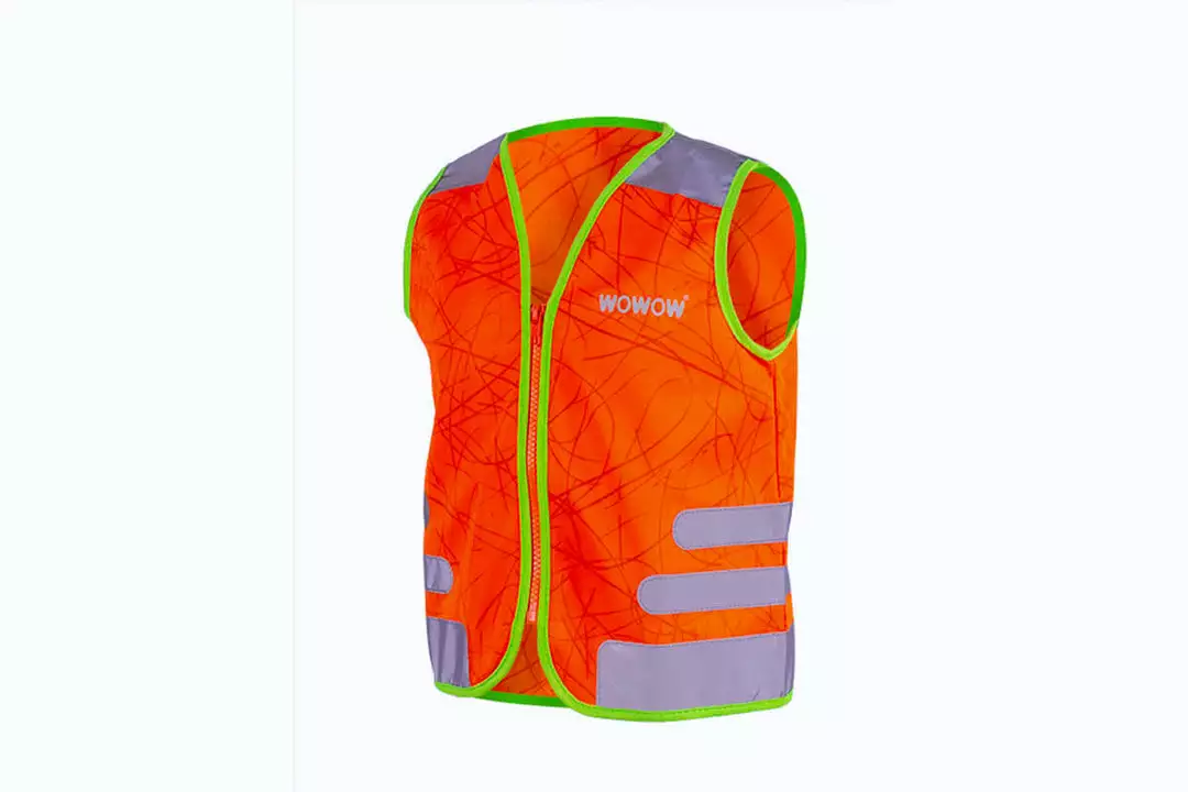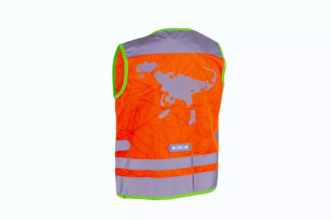 Wowow Children’s safety vest orange nutty pattern with reflective stripes.